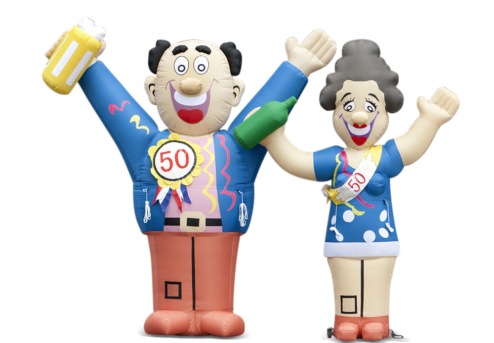 De opblaasbare figuren zijn een echt eyecatchers bij een verjaardag, huwelijk, Kerst, Pasen of ander thema.