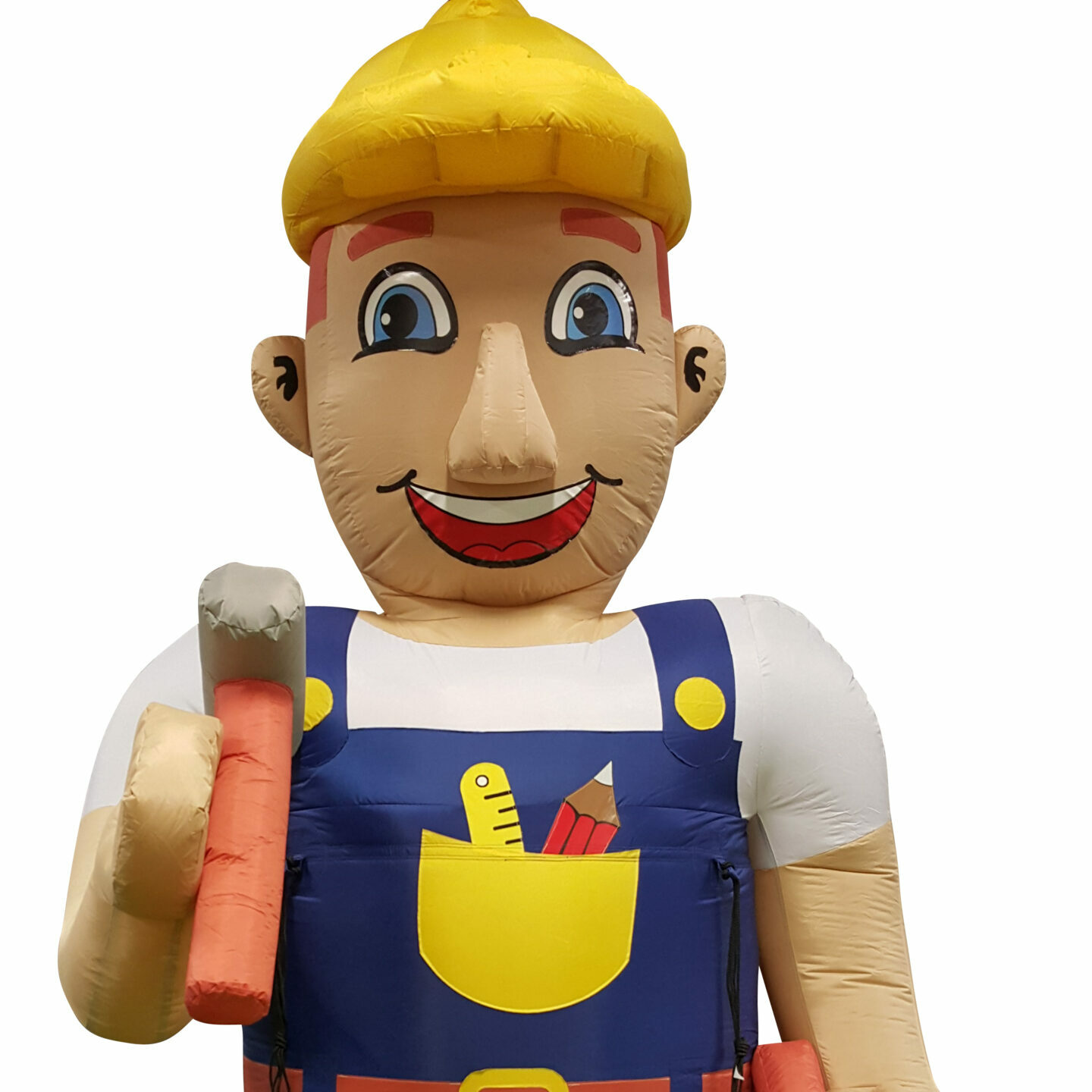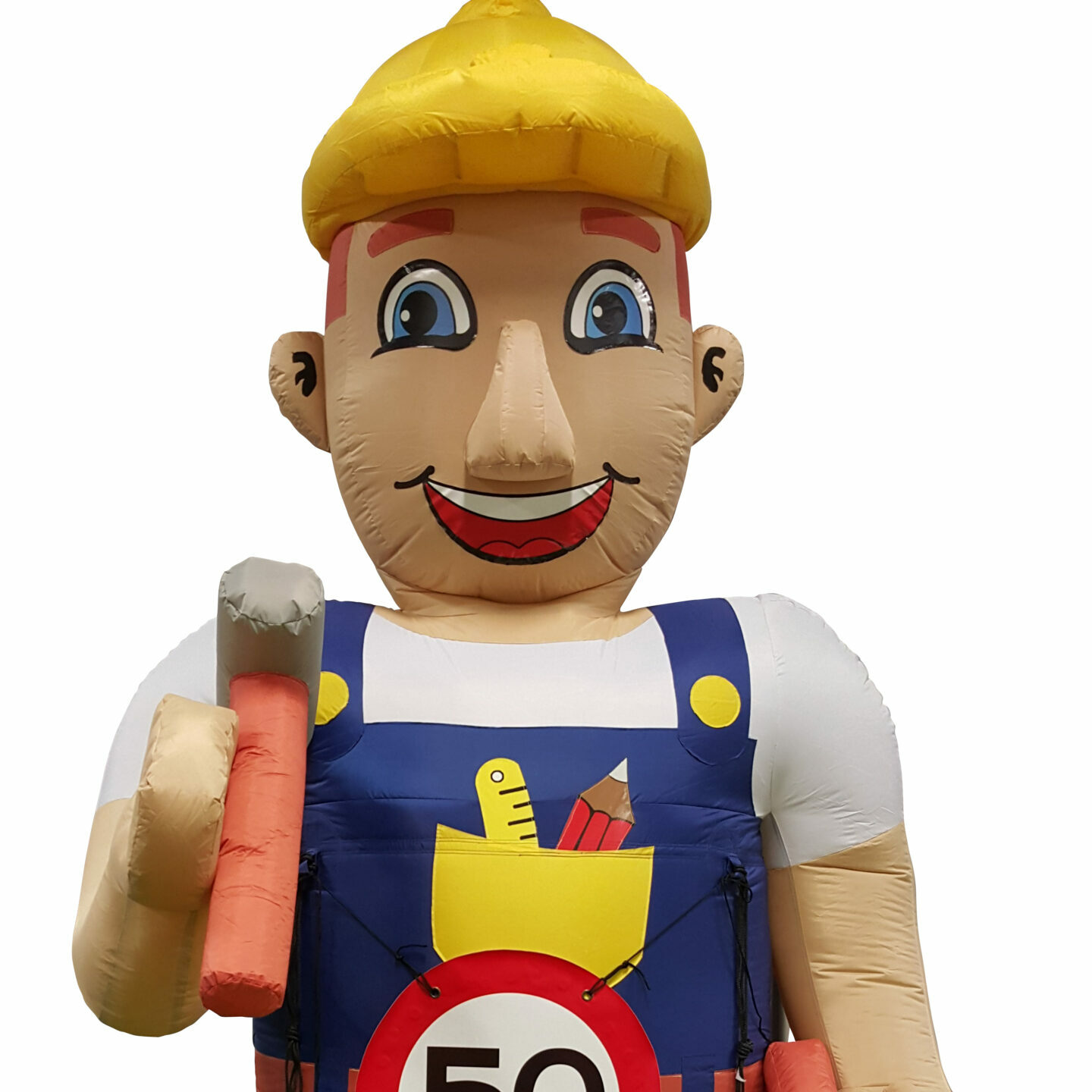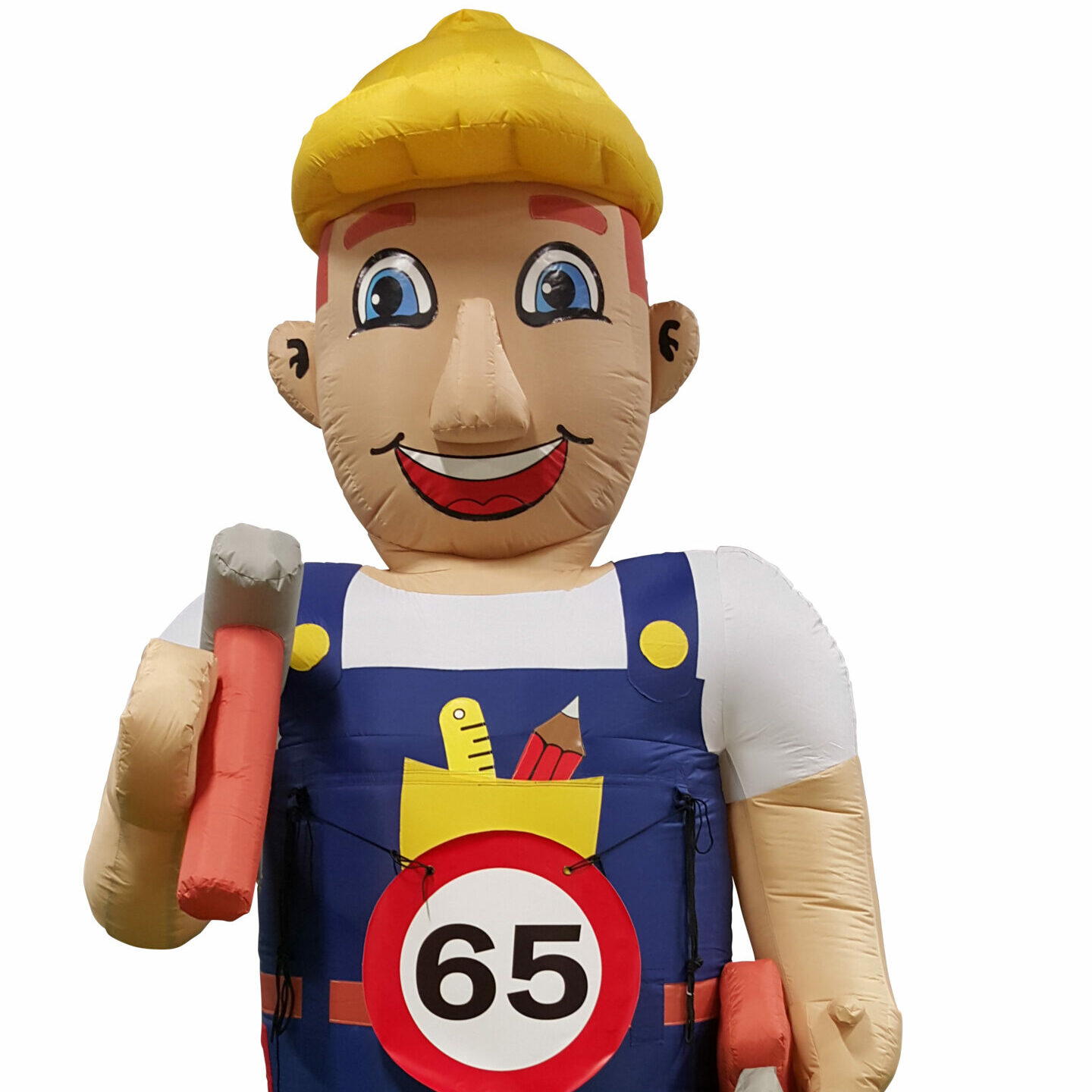 Deze opblaasbare Abraham de Bouwer met een hoogte van 3,5 meter heeft een hamer in de hand. Deze pop is uitermate geschikt voor de handige Harry in de familie of vriendengroep. De Abraham is te voorzien van een button met hierop de leeftijd van de jarige. De buttons zijn bij ons verkrijgbaar met verschillende opdrukken; 18, 25, 30, 40, 50, 60 of 65.