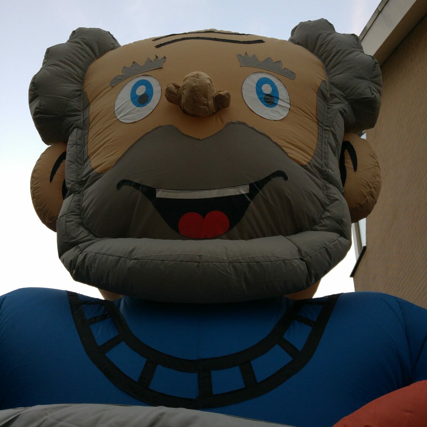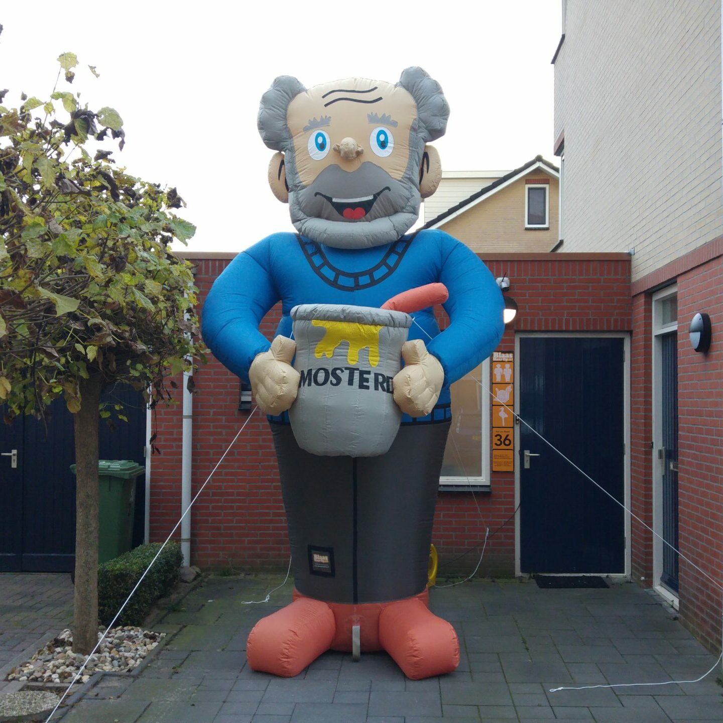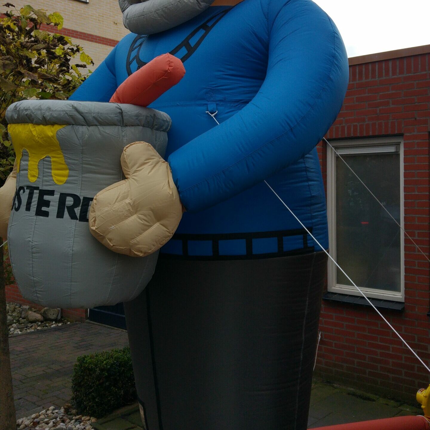 Deze opblaasbare Abraham met een hoogte van 3,8 meter heeft een mosterd pot in de hand. Van de uitdrukking “Weten waar Abraham de mosterd haalt”. De Abraham is te voorzien van een button met hierop de leeftijd van de jarige. De buttons zijn bij ons verkrijgbaar met verschillende opdrukken; 18, 25, 30, 40, 50, 60 of 65