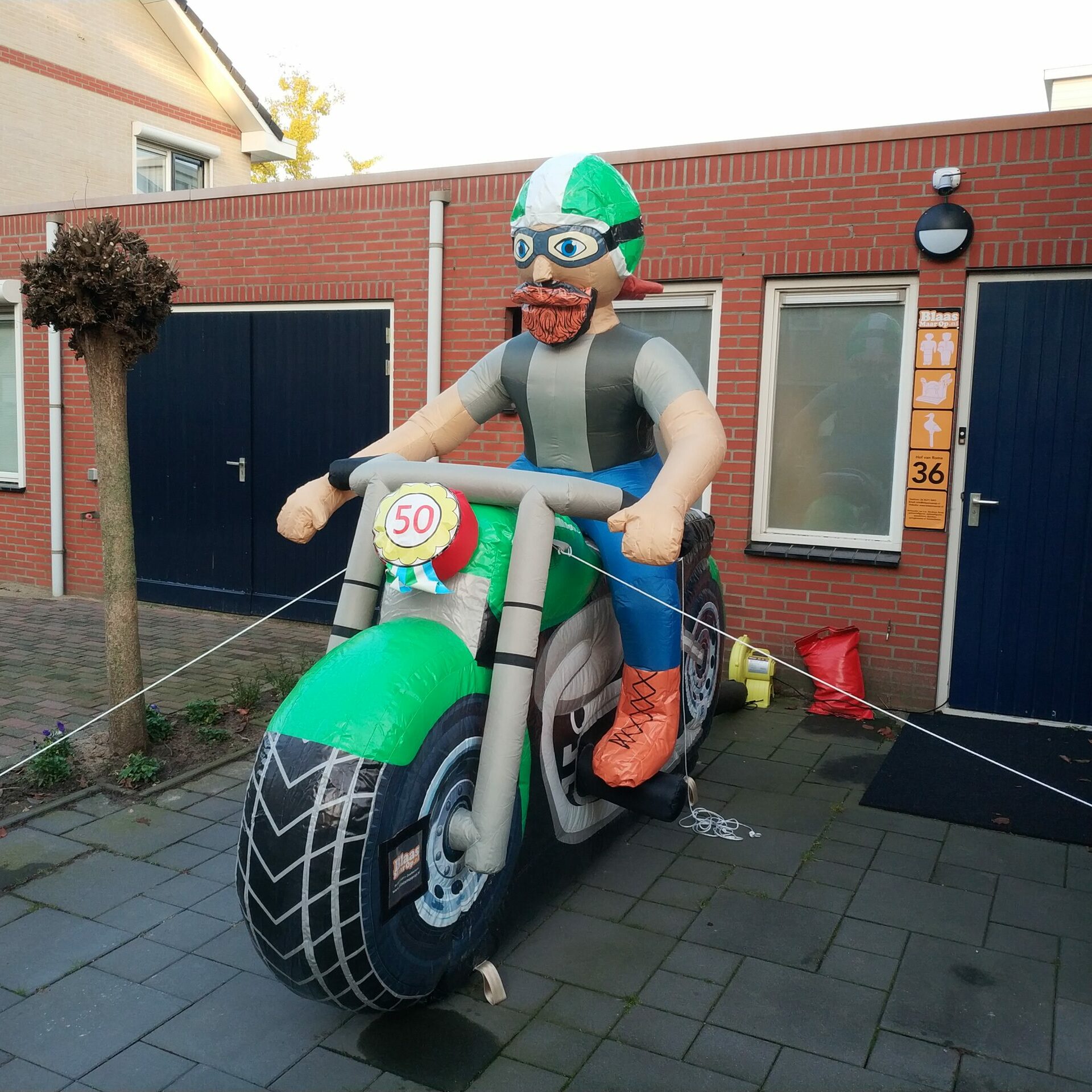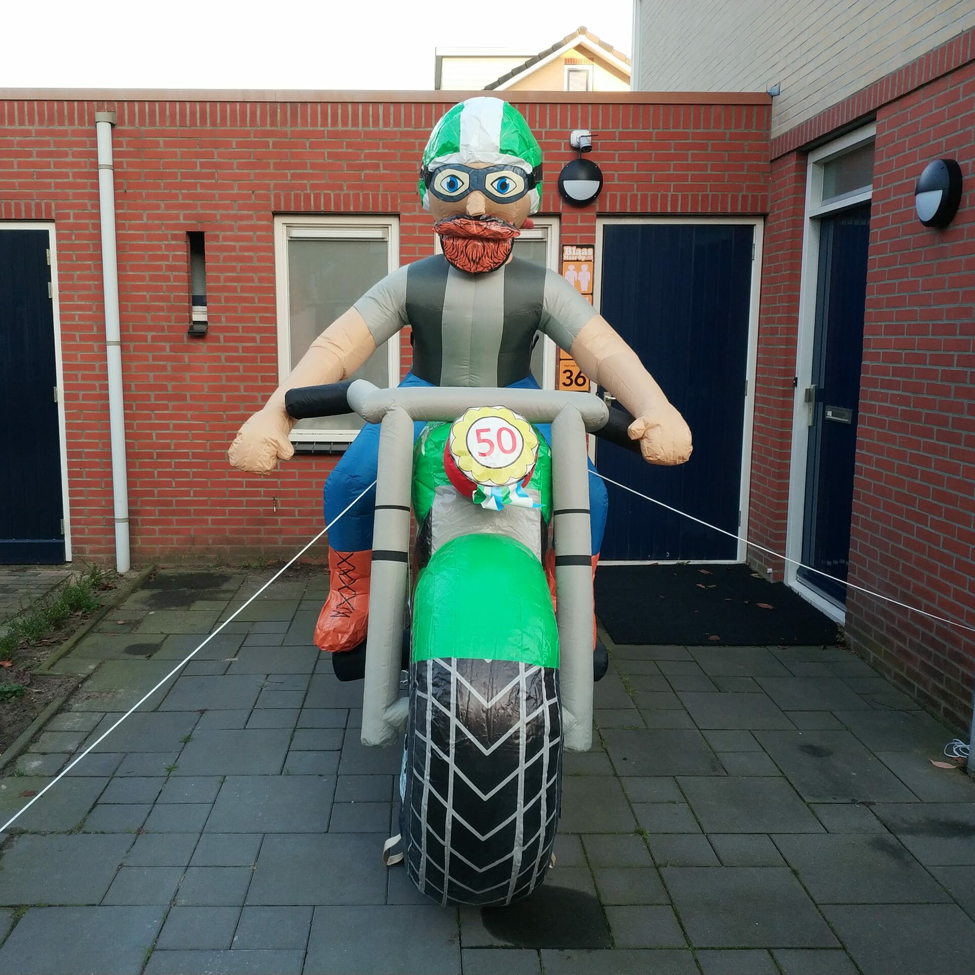 Deze opblaasbare Abraham Motor is voor de echte motormuis die 50 wordt. Maar uiteraard is de Abraham ook te voorzien van een button met hierop de leeftijd van de jarige. De buttons zijn bij ons verkrijgbaar met verschillende opdrukken; 25, 40, 50, 65.