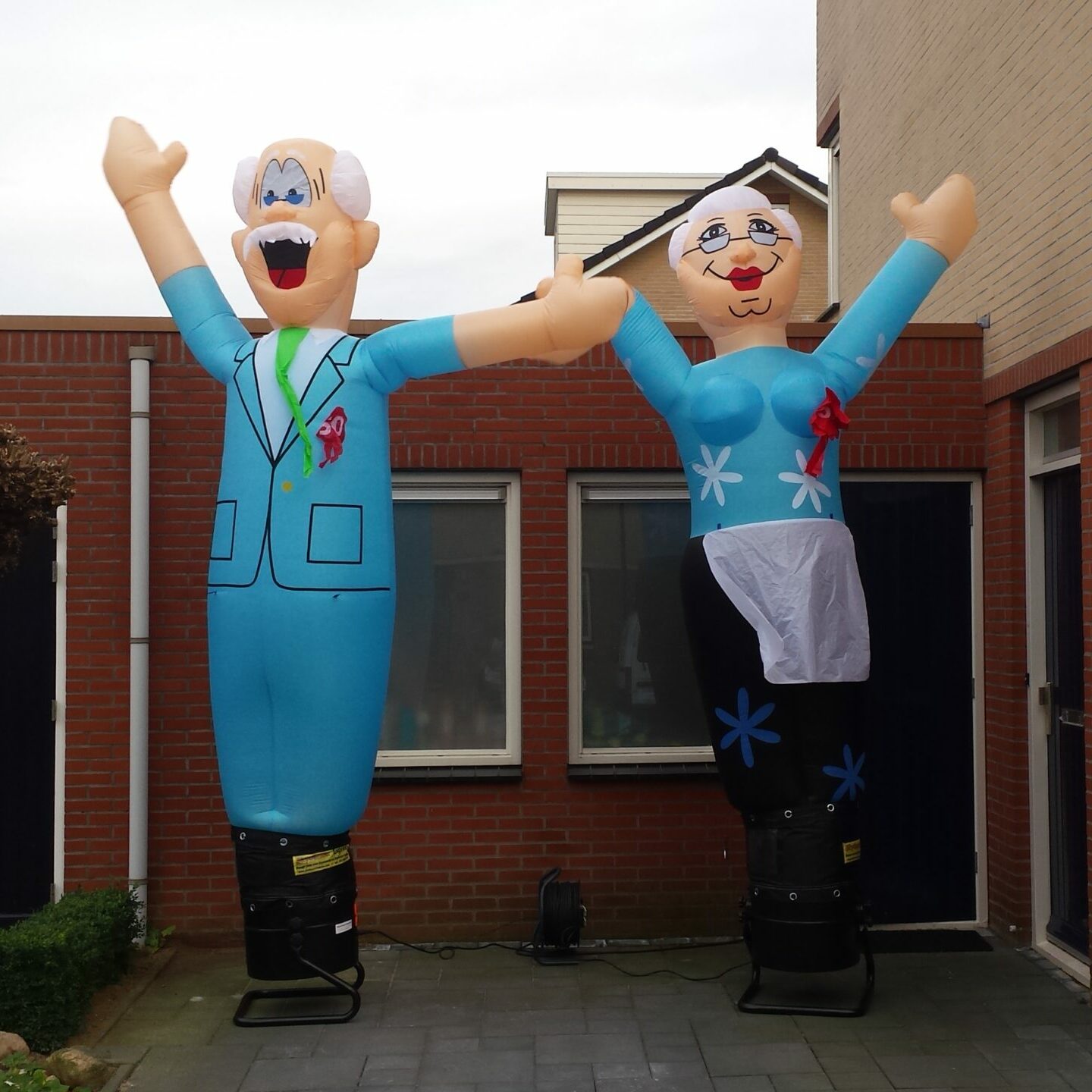 De Abraham Skydancer met een hoogte van 3,5 meter staat constant zwaaiend met de armen in de lucht. Deze pop is uitermate geschikt voor de kleinere tuin, een winkel en bedrijfspand. De pop hoeft namelijk niet vast gezet te worden met scheerlijnen en haringen en staat binnen 1 minuut.