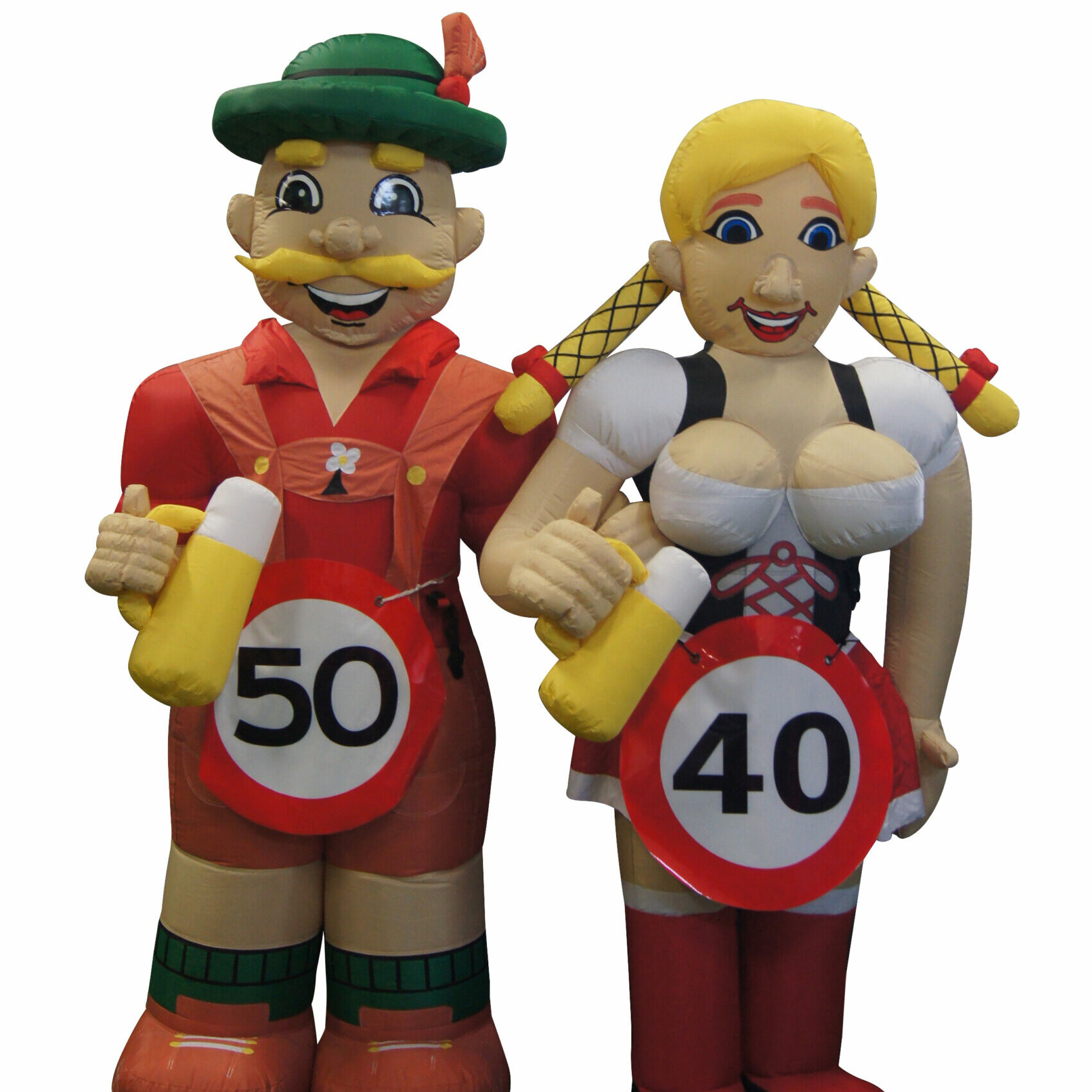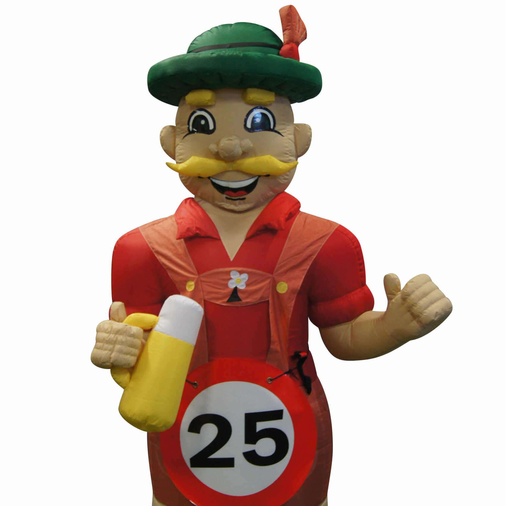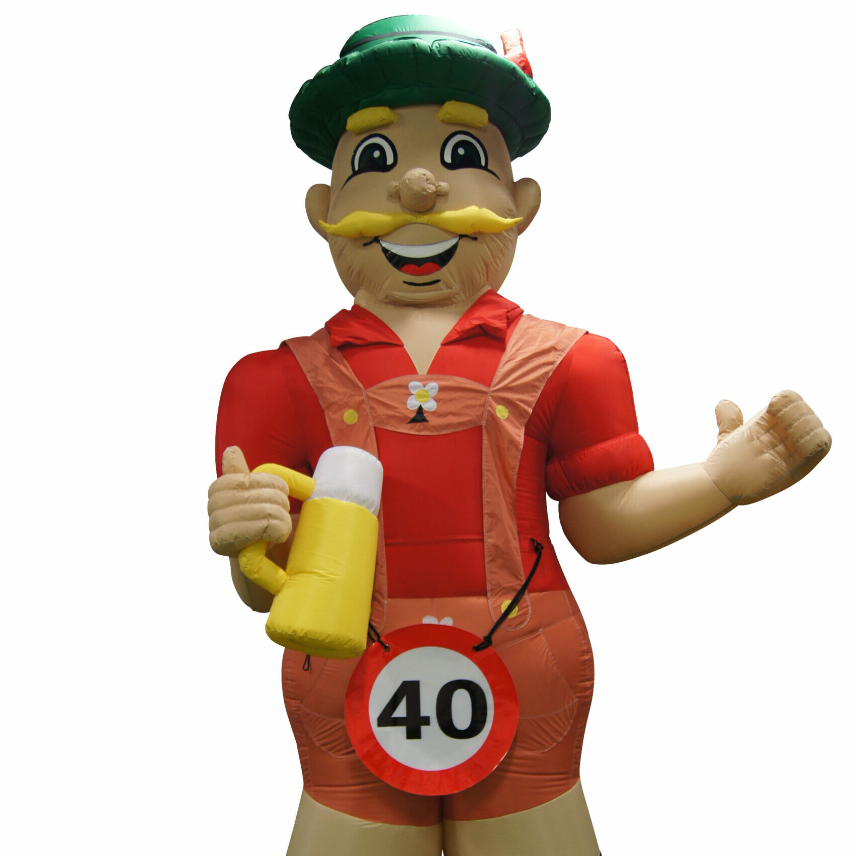 Deze opblaasbare Abraham Tiroler met een hoogte van 4 meter heeft een Bierpul in de hand en een echt Tiroler pakje aan. Huur ook de Sarah Tiroler voor bijvoorbeeld een Oktokberfest. De Abraham is te voorzien van een button met hierop de leeftijd van de jarige. De buttons zijn bij ons verkrijgbaar met verschillende opdrukken; 18, 25, 30, 40, 50, 60 of 65.