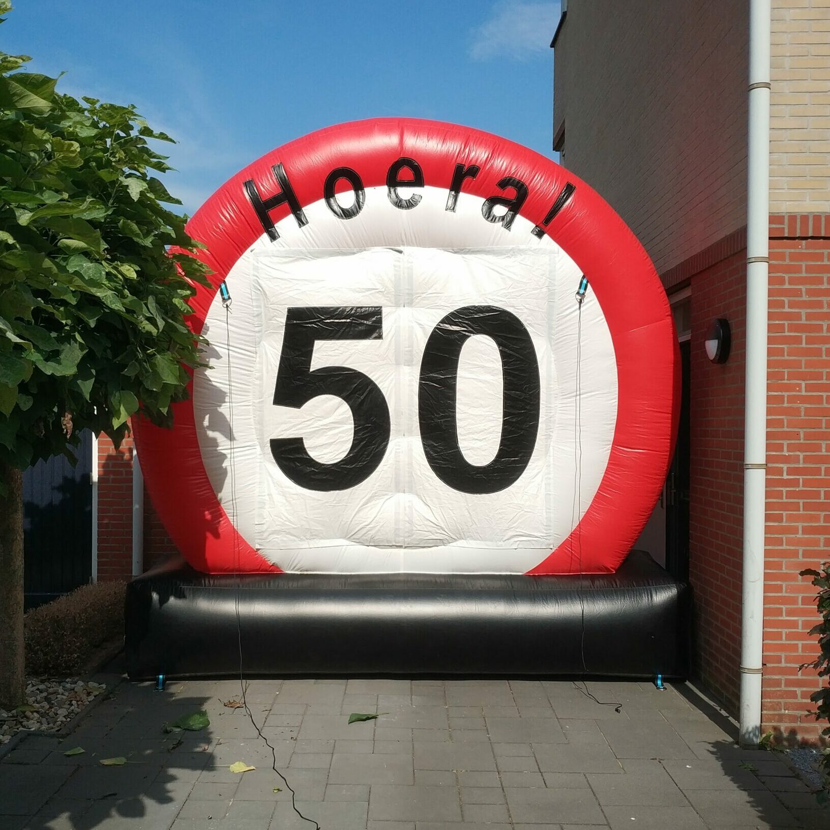 Het opblaasbare Verkeersbord met een hoogte van 3,5 meter is geschikt voor alle leeftijden van 0 t/m 99. Dit verkeersbord is aan 2 kanten te bekijken dus ook op de andere kant kan de leeftijd van de jarige te zien zijn. Door dat we alle cijfers van 0 t/m 9 dubbel hebben kunnen alle gewenste cijfer combinaties gemaakt worden. De cijfers kunnen door middel van klittenband op het verkeersbord bevestigd worden.