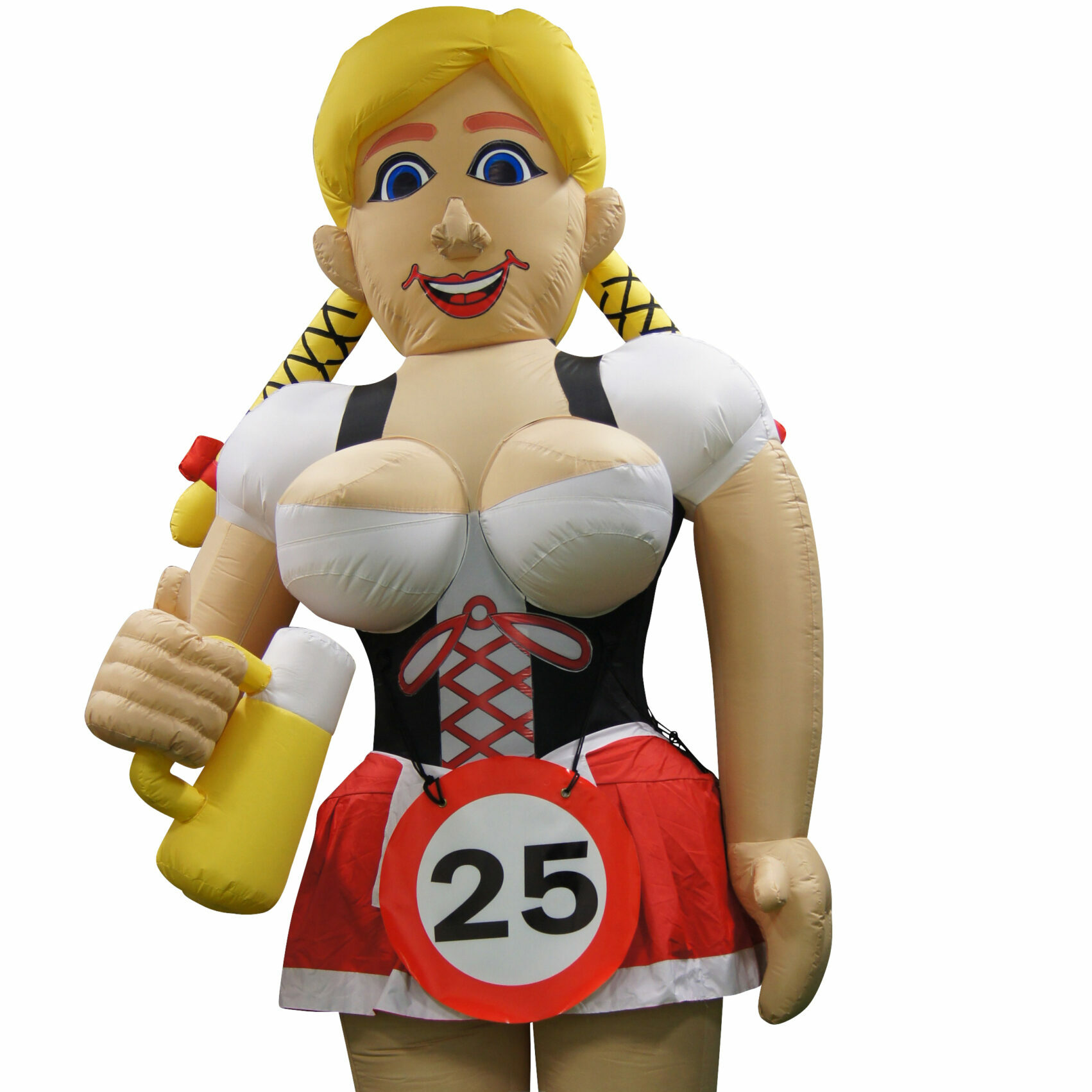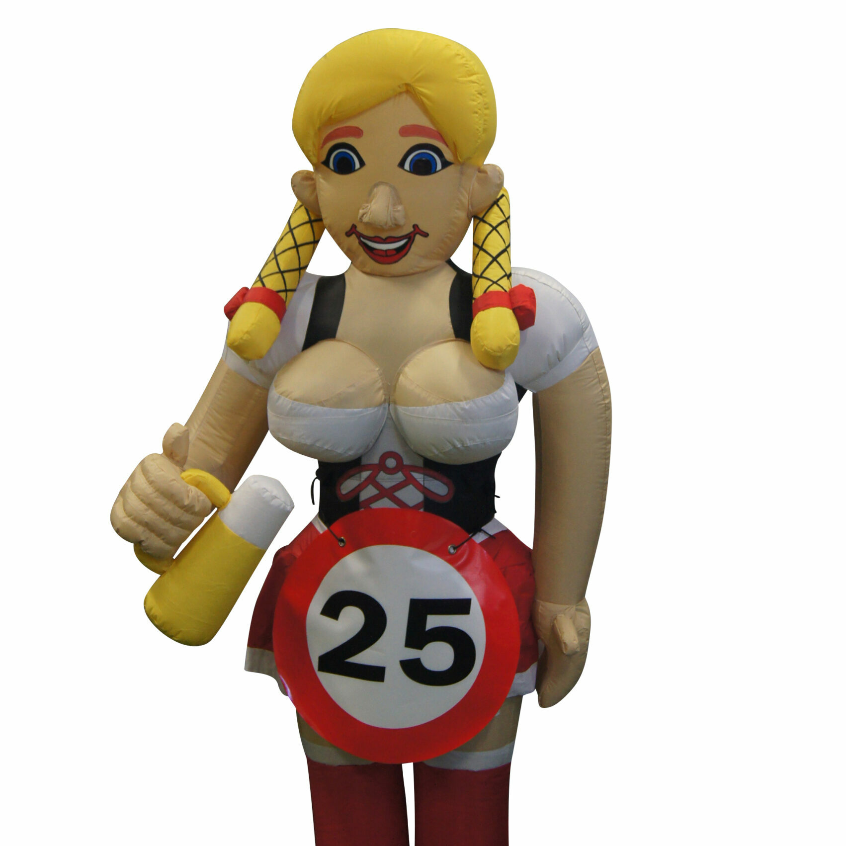 Deze opblaasbare Sarah Tiroler met een hoogte van 4 meter heeft een Bierpul in de hand en een echt Tiroler pakje aan. Huur ook de Abraham Tiroler voor bijvoorbeeld een Oktokberfest. De Sarah is te voorzien van een button met hierop de leeftijd van de jarige. De buttons zijn bij ons verkrijgbaar met verschillende opdrukken; 18, 25, 30, 40, 50, 60 of 65.